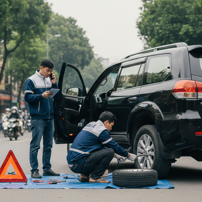 Thay lắp, cứu hộ lốp ô tô du lịch tại các khu đô thị mới tại Hà Nội: